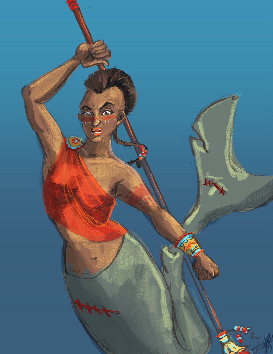 23rd Day of Tom Bancroft’s MerMay 2022, prompt Warrior. #MerMay #MerMay2022 #WacomMerMay2022 #digital #warrior