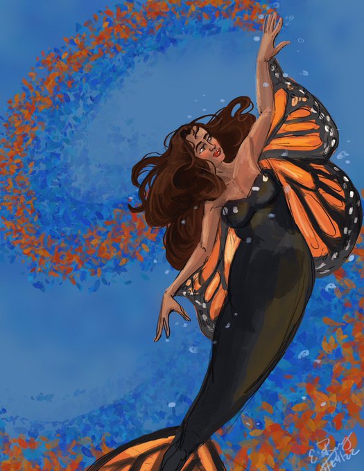 24th Day of Tom Bancroft’s MerMay 2022, prompt Social butterfly. #MerMay #MerMay2022 #WacomMerMay2022 #digital #socialbutterfly