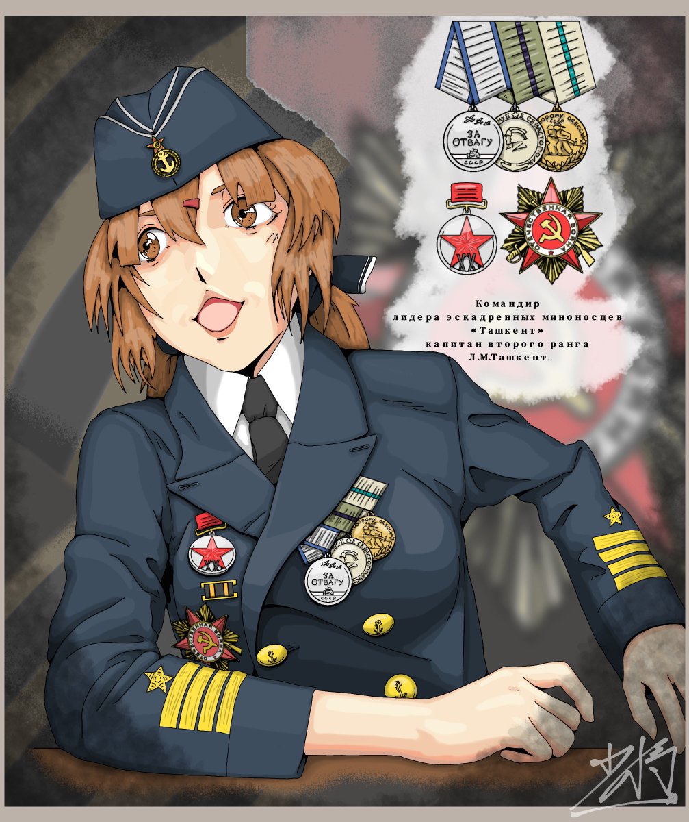 Наш командир трудового класса Our labor class’s commander Communication lieutenant/infantry captain/junior political instructor (political officer correspond to lieutenant Tap pixiv link to see more explanations about medals and others pixiv.net/artworks/95872… #イラスト #Soviet