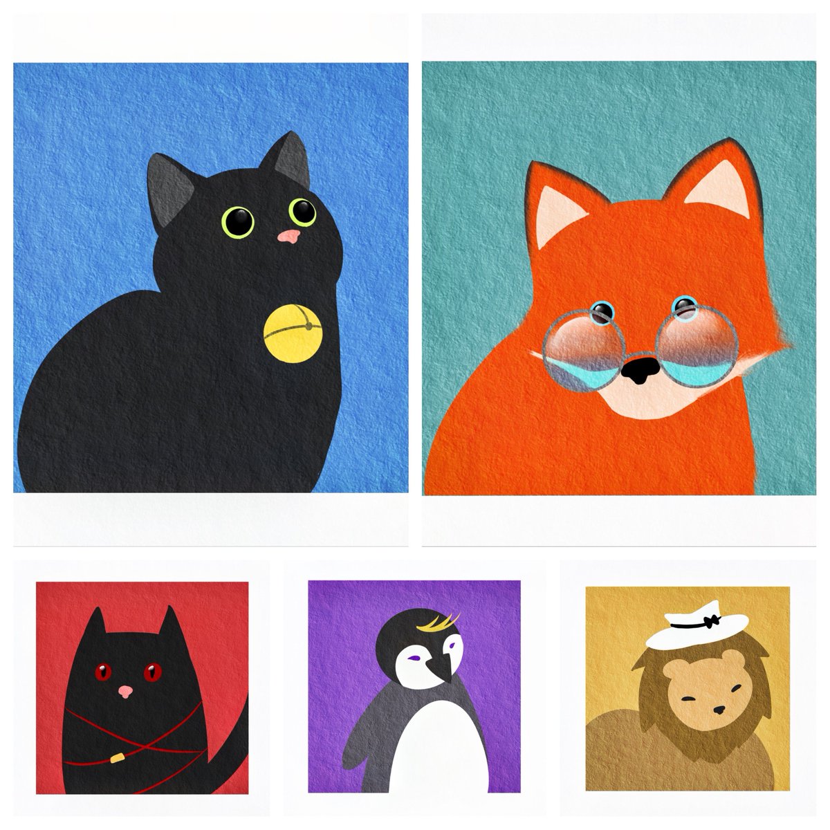 Draw some cute animals~~~~~~~~~🐱🦊🐈⬛🐧🦁and congratulations on Mysta reaching 200k fans!!!#Ikenography #MystArt #Akurylic #YaminoArt #drawluca (Why is it that twitter can only post 4 images??so i cant post all five