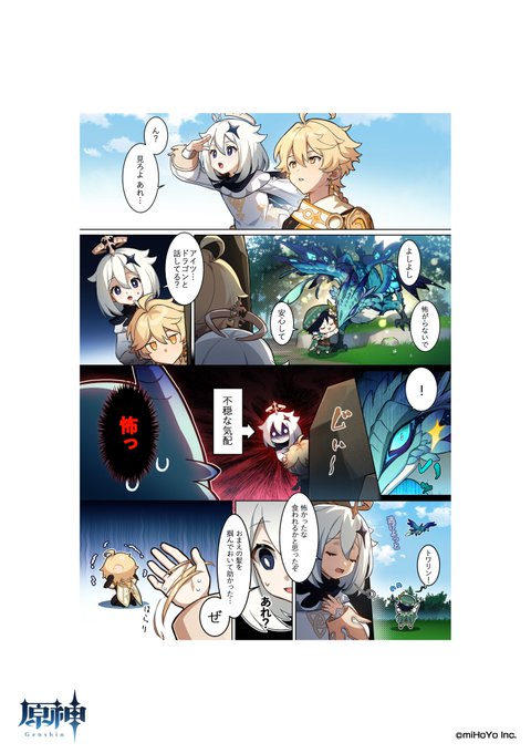 【ショートまんが】 風魔龍が突如モンド城を襲ってきて、ピンチの旅人! でも大丈夫!パイモンが「あるもの」をたくさん用意しているみたい…! #原神 #Genshin #原神ショートまんが