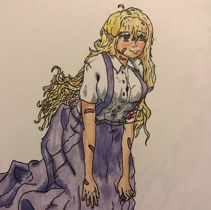 This is an elf npc named ani she tends a garden of which she has never left so she can be slightly confused sometimes, how do u think it turned out? #dndart #DnDcharacter #OC #ELFantasy #elf #art #copic #artistsontwitter #dnd #dnd5e