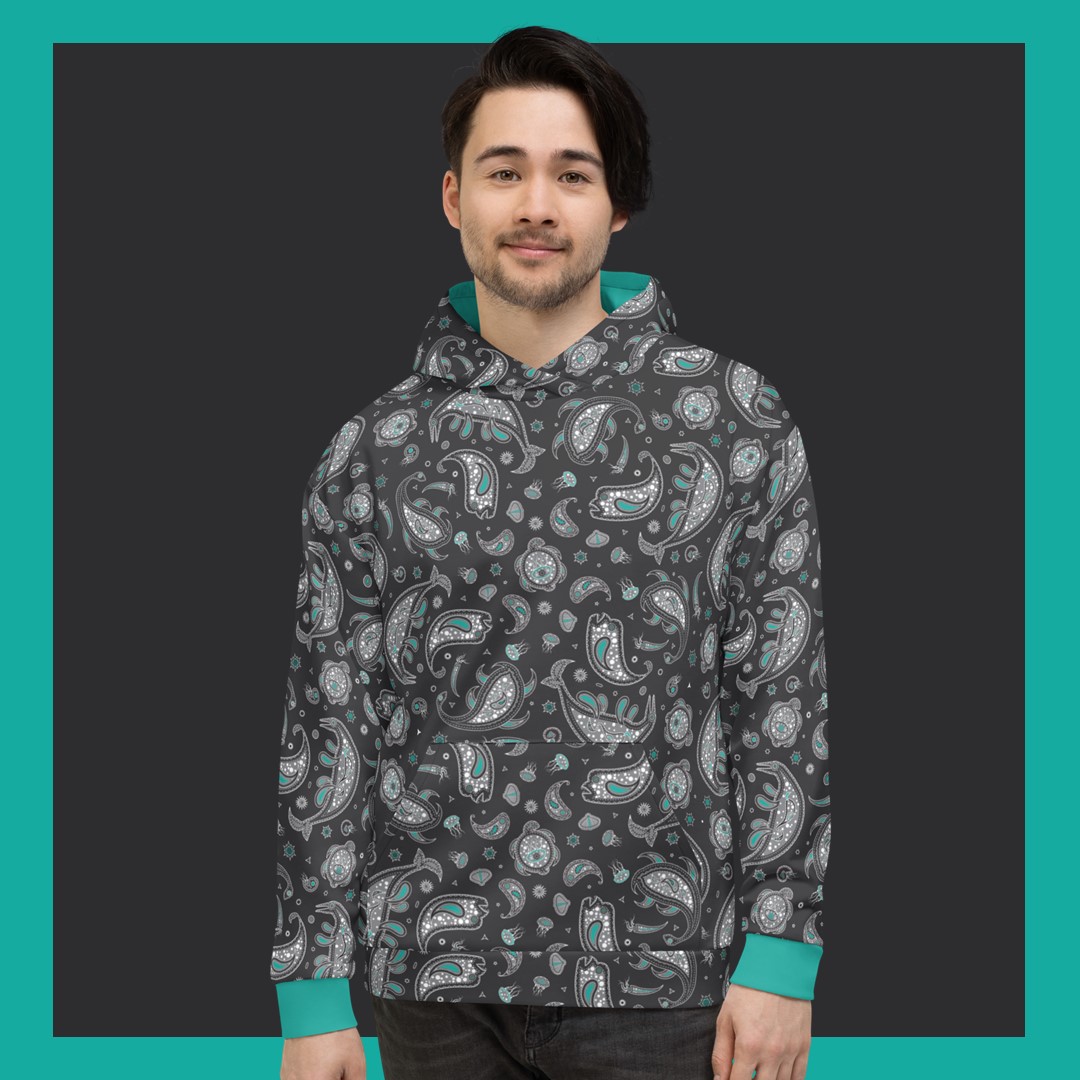 The fundraiser for @SternbergCamps continues with this hoodie featuring mosasaurs, plesiosaurs, one disgruntled dinosaur, and a bunch of other cool marine organisms from the Western Interior Seaway. Fashionable and warm! #PaleoArt #Fossils geopetalfabric.com/products/unise…