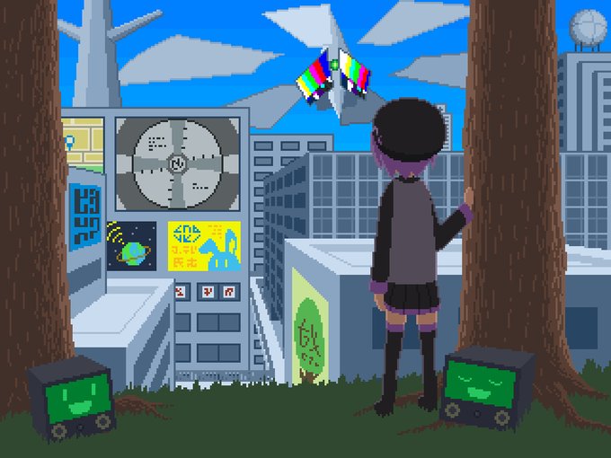 「夢路の街」に使ったドット絵 #デフォ子 #矩形音レクタ #ドット絵 #街並み pixiv.net/artworks/88378…