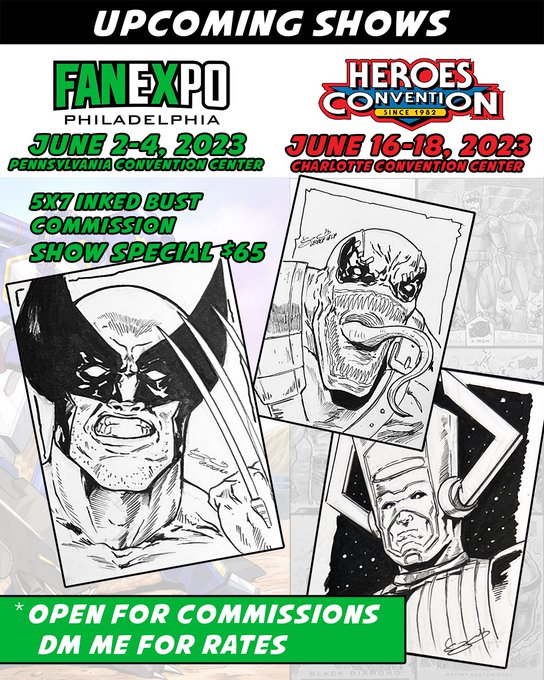 Show special only! If you want to lineup a commission for one of these shows here is a special for ya! Bigger commissions available too. #fanexpophilly #heroescon #conventions #comicbooks #comics #comicart #sequentialart #comicbookart #illustration #drawings #sketches #inking