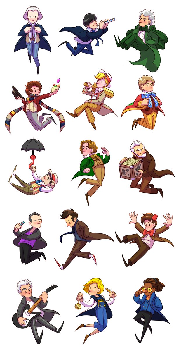A chaos of Doctors! All the finished Doctor designs in one place, phew! Now to get on with the Dracula stickers... #DoctorWho