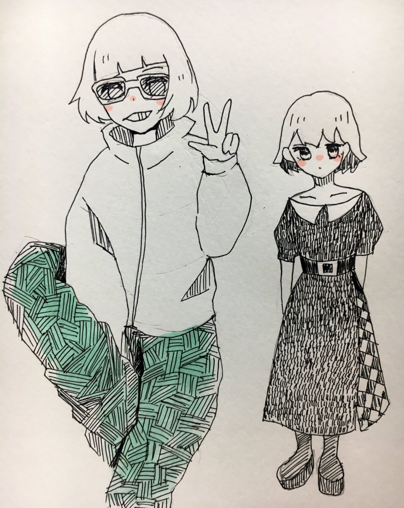 7 13 久々に紙とボールペンで描きました 似合いそうな私服ニラちゃん落書き #ずっと真夜中でいいのに #ずとまよファンアート #勘冴えて悔しいわ #胸の煙 #お勉強しといてよ #眩しいDNAだけ 21/04/07 01:07