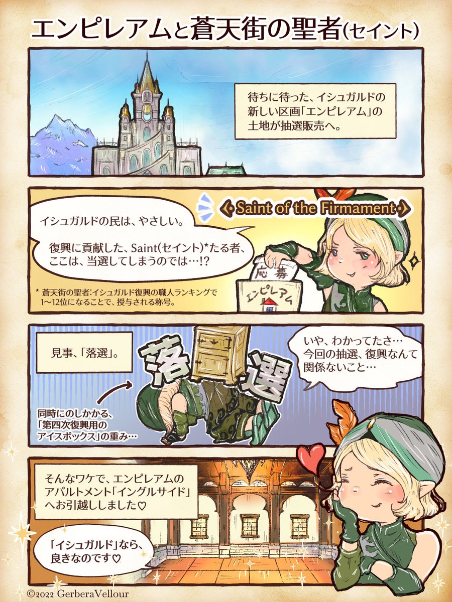 やはりイシュガルドの厳しさは、尋常じゃぁない。 #FF14 #FFXIV #FinalFantasyXIV #ENDWALKER #FF14イラスト #ララフェル #FF14Gerbera4コマ