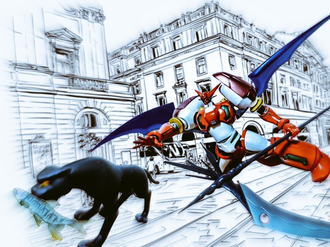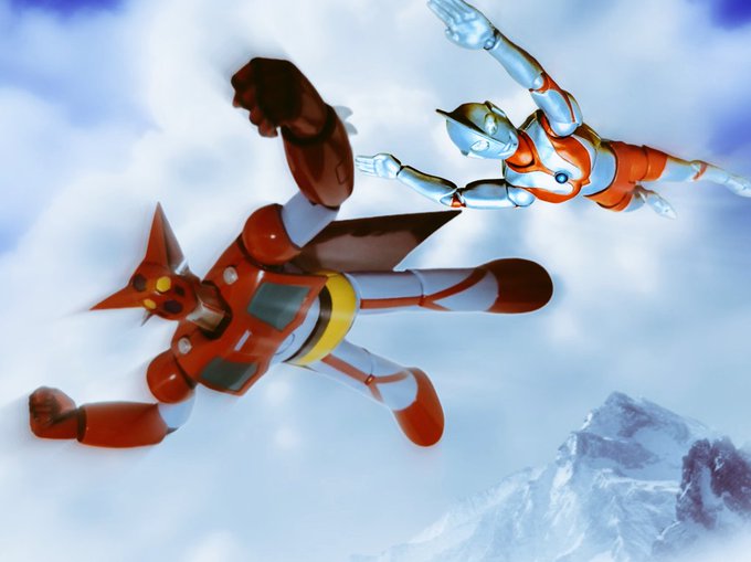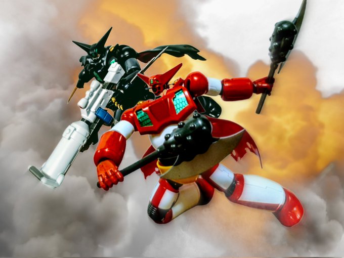 #夜のフィギュア撮影会 お題「フリー」 1973年放映の名作ドラマ「どっこい大作」のOPをゲッターロボで再現📸 1月に一度スベったネタですが、フォロワーさんは元ネタを知ってるはず🔥!…と信じて撮り直しました🥲