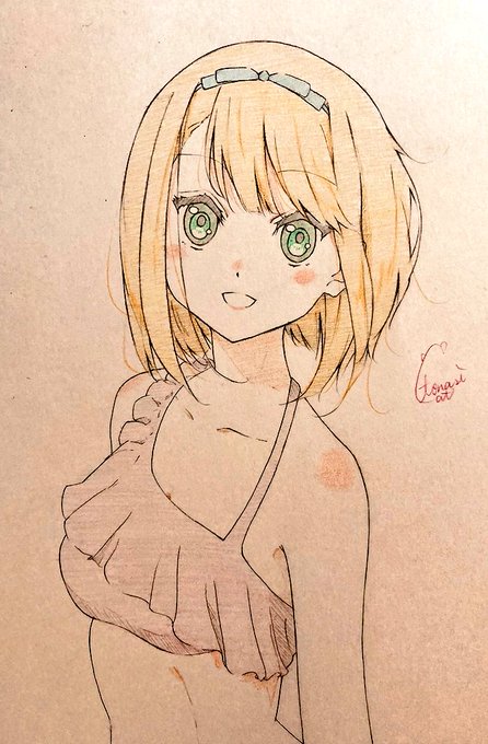 描けと言われた気がしたので… 目はタレ目ツリ目判断できず若干ツリ目にしてます…タレ目派の方すみません…しかしキャラデザかわいい。 22/7 #織原純佳 #椎名桜月 #ナナブンノニジュウニ #ナナニジ #ラフ