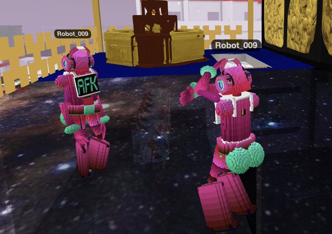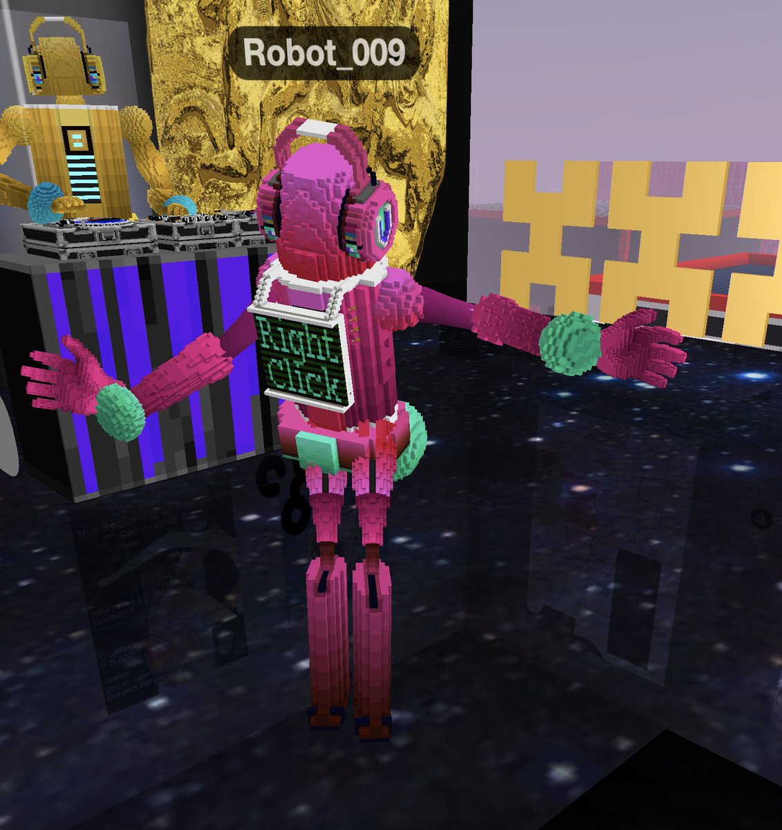 Bleep bloop Robot_009 AFK please leave a message #Voxelart #Robots #NPC #CannyValley #CryptoVoxels Add Avatar description?