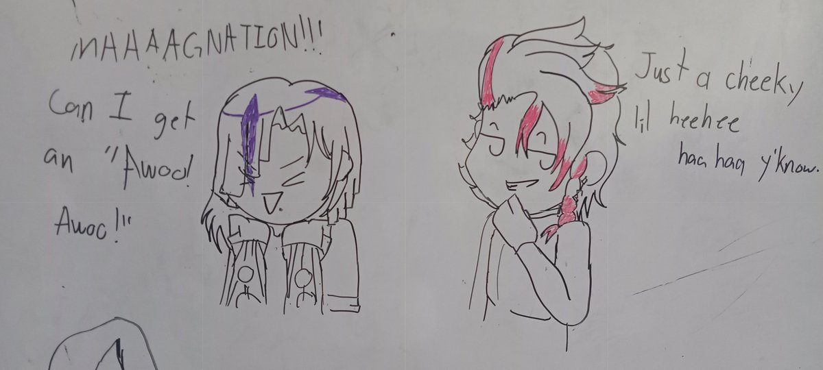 More cheeky Tempus doodles but with Leader-San after he announced his stream for tomorrow. I feel like it'll go something like that. #WorkofAlt #AltVenture #holoTEMPUS