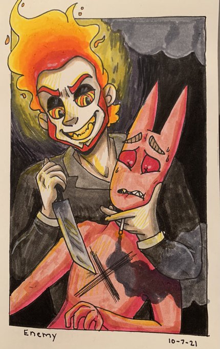 Inktober day 7: Enemy (My ocs Harley and Ash are mortal enemies) #Inktober #inktober2021 #inktober2021day7 #art #artwork #myart #myocs #originalcharacter #ArtistOnTwitter