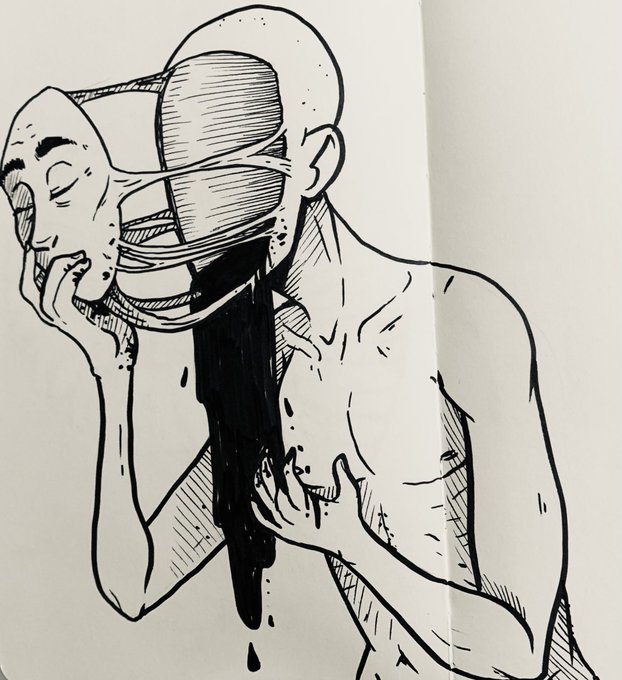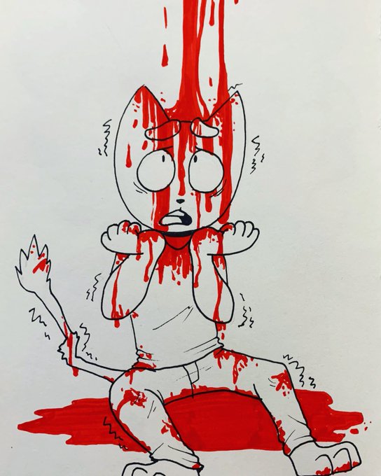 Inktober day 23: Leaking #inktober #inktober2021 #inktober2021day23 #traditionalart #art #artwork #blood #fursona #horror #artistontwittter