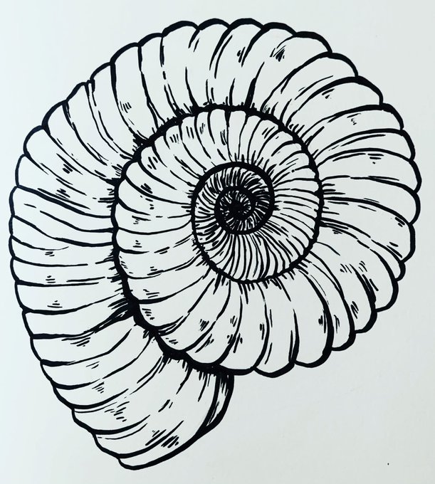 Inktober day 24: Fossil #Inktober #inktober2021 #inktober2021day24 #art #artwork #traditionalart #fossils #ammonite #ArtistOnTwitter