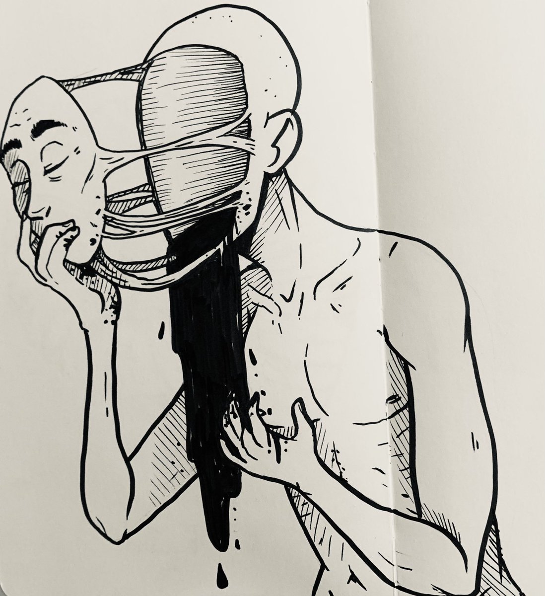 Inktober days 25-26: Splattered and Disconnect (I got lazy and combined two days I missed) #Inktober #inktober2021 #inktober2021day26 #inktober2021day25 #bodyhorror #art #artwork #ArtistOnTwitter