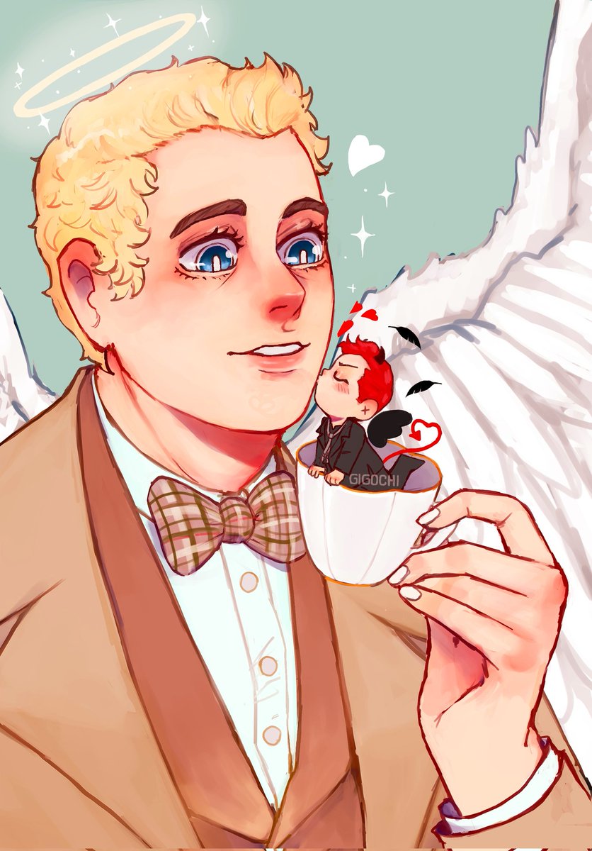 Espero que hayan pasado un buen San Valentin >u<)💖 #ineffablehusbands #Goodomensfanart #GoodOmens
