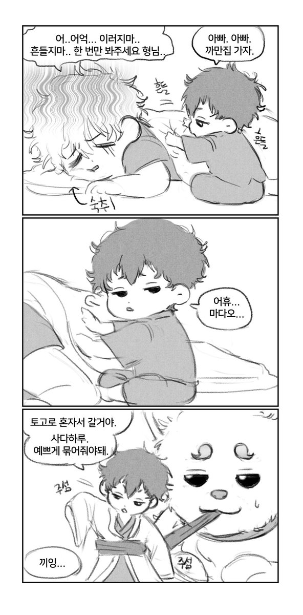 꿀꿀이가 된 토고로🐷 소고가 구워서 잡아먹는다고 엄청 놀려댔다네요ㅋㅋ #긴히지