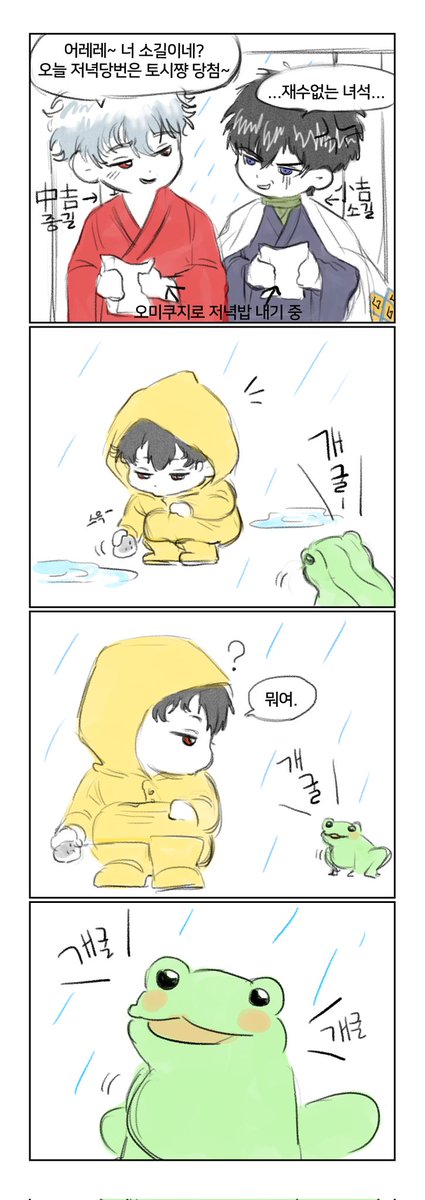 #銀土 #긴히지 🐸 토고로와 개구리 🐸 1 오미쿠지: 일본 신사나 절에서 운세를 점칠 수 있는 종이를 뽑는 문화 중길이 소길보다 좋은 운이랍니다! ㅎㅎ