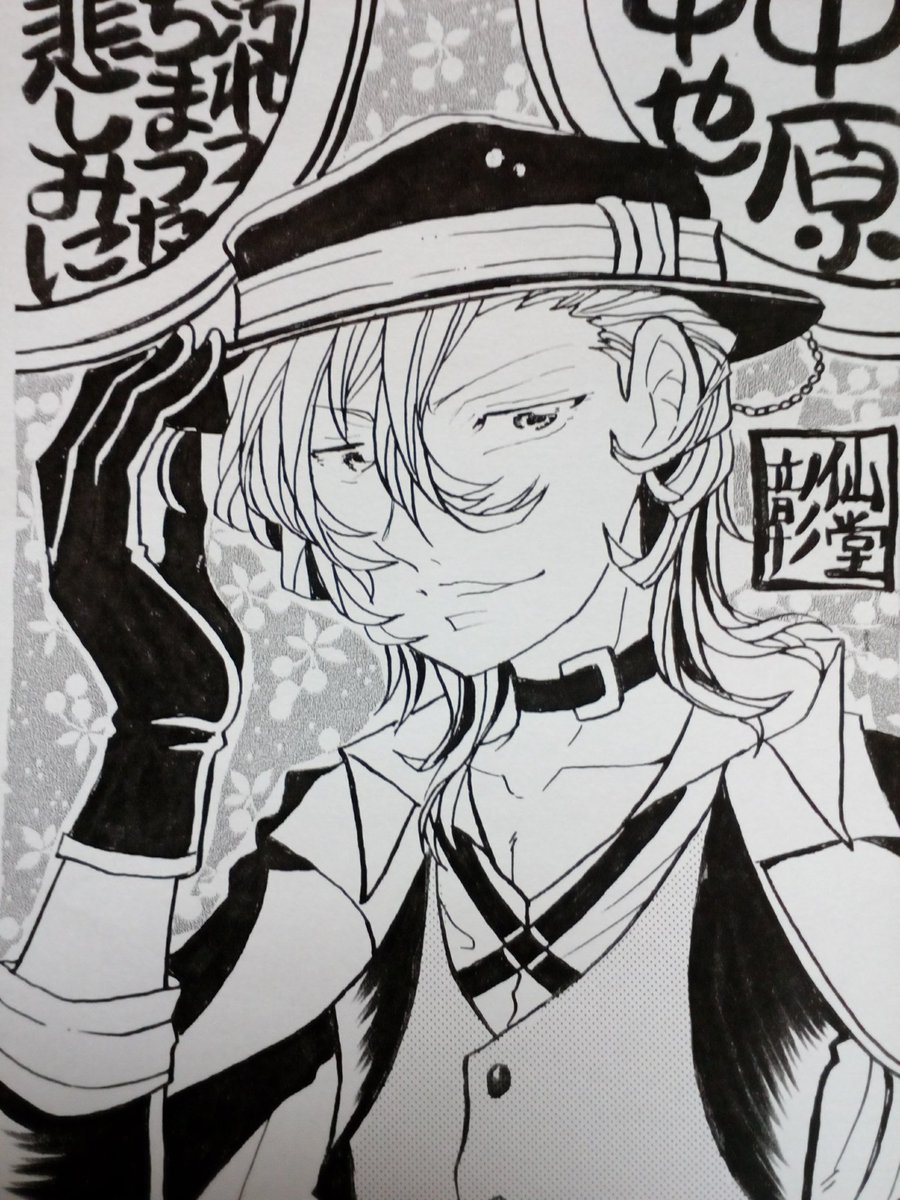 2 9 #このタグを見た人は自分が描いたモノクロ絵を貼れ #文豪ストレイドッグス #中原中也 汚れつちまつた悲しみに 22/09/23 21:22
