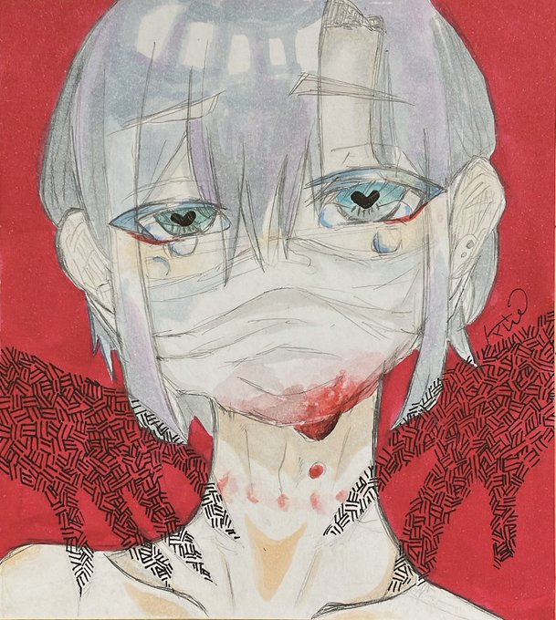 0 8 もっと健全な絵が描きたいです。🔪 血描くの楽しい!!!!!!! #コピック #水彩色鉛筆 #血 #色紙 22/10/16 13:05