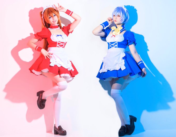 114 533 アスカ×レイのメイド服ver. !! 1枚に2人を載せたいってカメラマンさんに伝えて、影も対になるように撮ってもらったお気に入りの写真〜❤️💙 エヴァンゲリオン/コスプレ 23/07/25 20:31