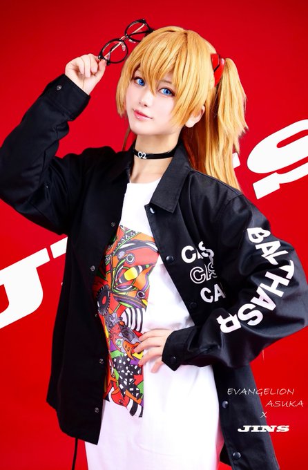 JINSコラボのアスカ✨(⚠️コスプレ) この洋服実際に着やすい〜 何よりアスカとお揃いが嬉しい😊🫶
