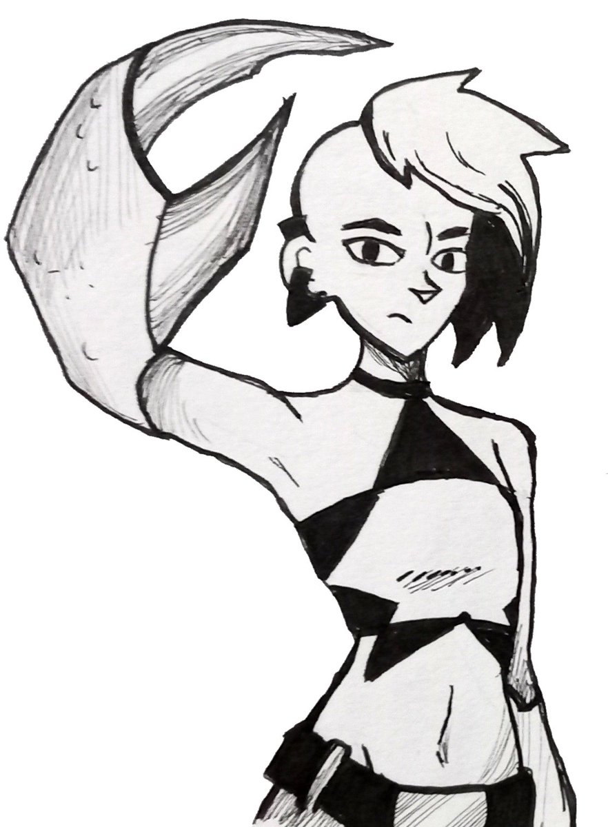 Day 18: scrape Tamari from Reckless Battery Burns scraping their detachable claws against a wall #inktober #inktober2022 #team6x111Art