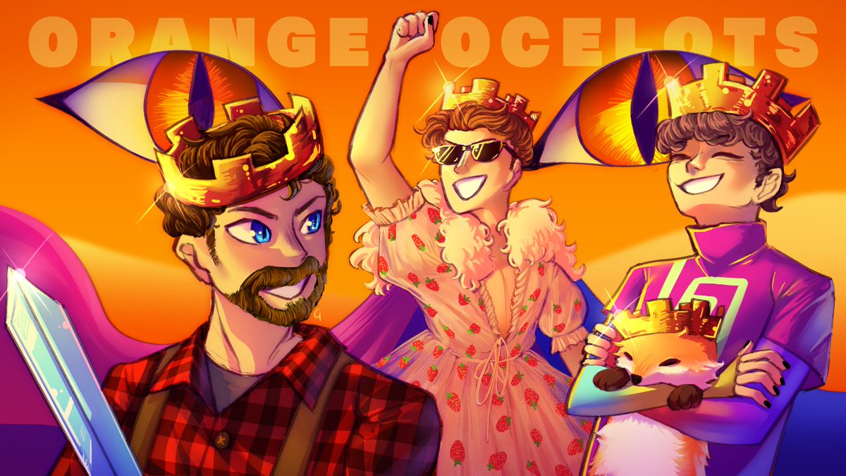 Everyone is pretty meh but with Karl on this team, and his 100% win rate, the orange ocelots are sure to win. :D Left to right are @HBomb94 @The_Eret @KarlJacobs_ & @FundyLive #fanart #MCChampionship #eretdress #DigitalArtist #fundyfanart #hbombfanart #karljacobsfanart