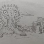 Anchiceratops and Apatoraptor from the Horseshoe Canyon Formation of Canada. I made the keratin sheaths point outward because making them point inward, like the actual horn structure, is hard, ok, it's hard, don't judge me #paleoart #paleontology #dinosaur