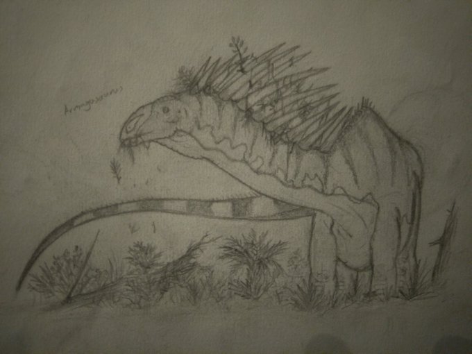 An Amargasaurus cazaui forages in the underbrush, catching branches and fibres in the spines adorning its neck. #paleoart #dinosaurs