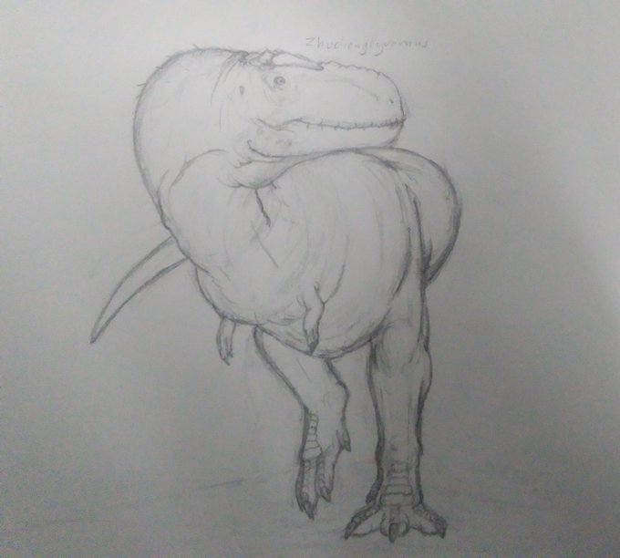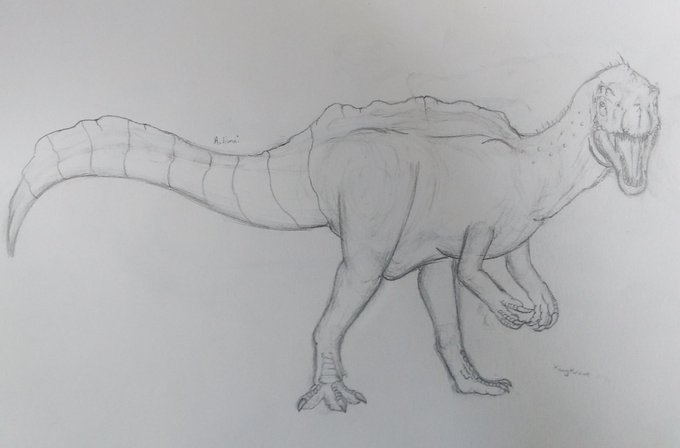 A quick Zhuchengtyrannus sketch I did a few days ago. I personally think my sketches look better when I don't try and give the animals feathers, fur, or scales. Won't get better at drawing those though if I stop doing it, so I'll keep trying #paleoart #dinosaurs #paleontology