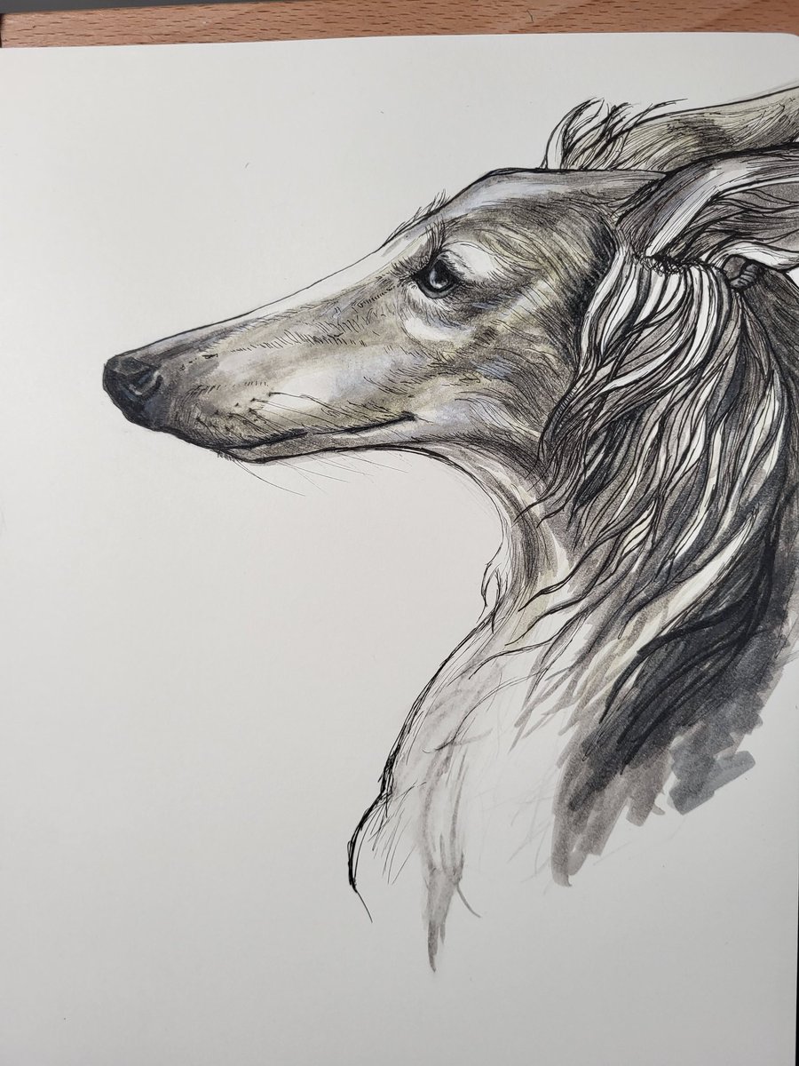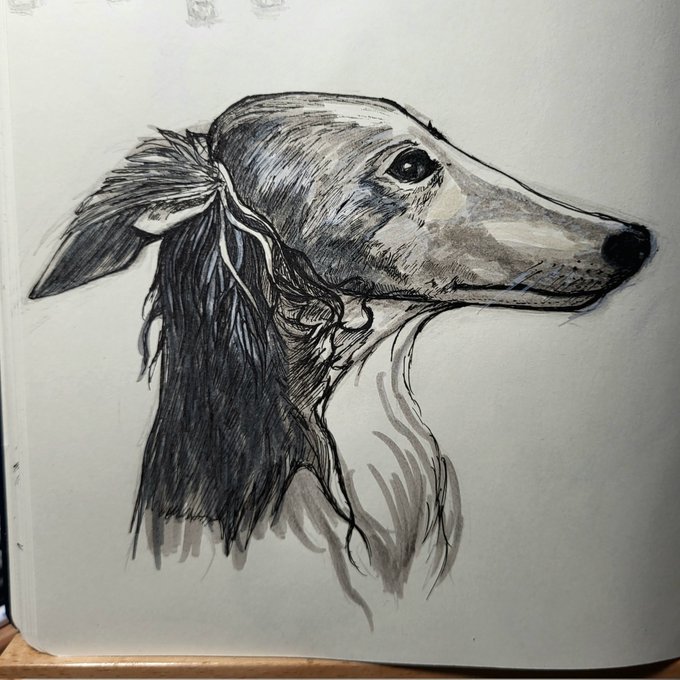 1 3 Another sketch of my girl I like rhis watercolor ink pen brush Will try some more Happy day all, week end is starting #sketch #sketchbook #windhound #sighthound #inktober2022 22/10/28 21:00