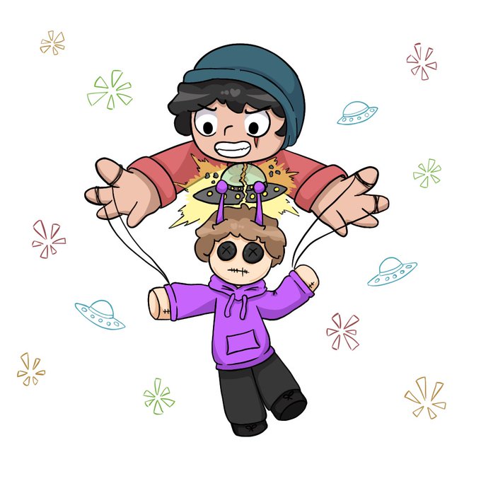 14. Doll Decided to draw Purpled as a doll, being controlled by Quackity. I took the idea from when Quackity blew up Purpled’s UFO to make him join Las Nevadas. #quackityfanart #purpledfanart #inktober2022