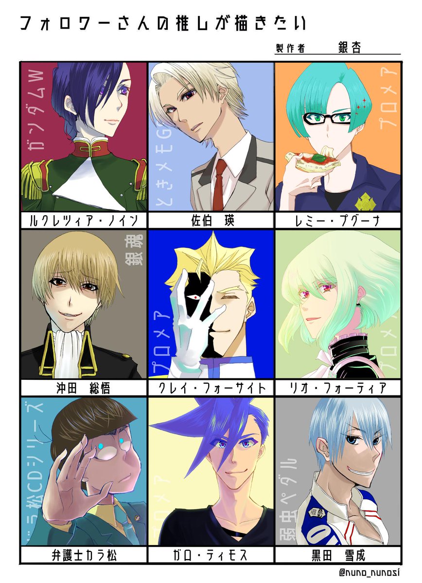 8 10 遅くなりました!!反応ありがとうございました~!!!!たのしかった!!!! テンプレありがとうございました! #フォロワーさんの推しが描きたい 19/09/22 17:52