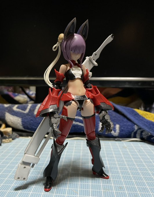獣脚型メガミ ランサーちゃん構成中 むっちゃんの武装脚とMSGの組み合わせでカッコいい獣脚になりました✨