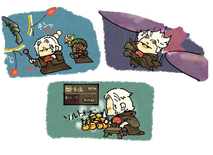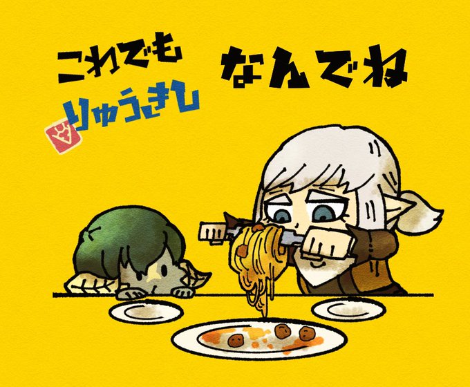 77 237 「エスティニアンはスパゲッティのルパン巻きが似合うなぁ〜」 と描いてたらエオルゼア絵本みたいになってた( ᐛ )🍝 23/03/27 17:06