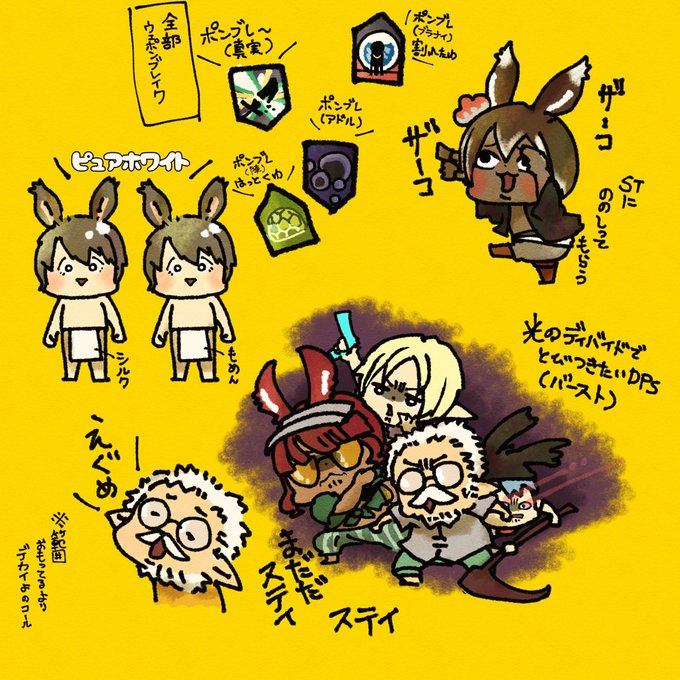 「エスティニアンはスパゲッティのルパン巻きが似合うなぁ〜」 と描いてたらエオルゼア絵本みたいになってた( ᐛ )🍝