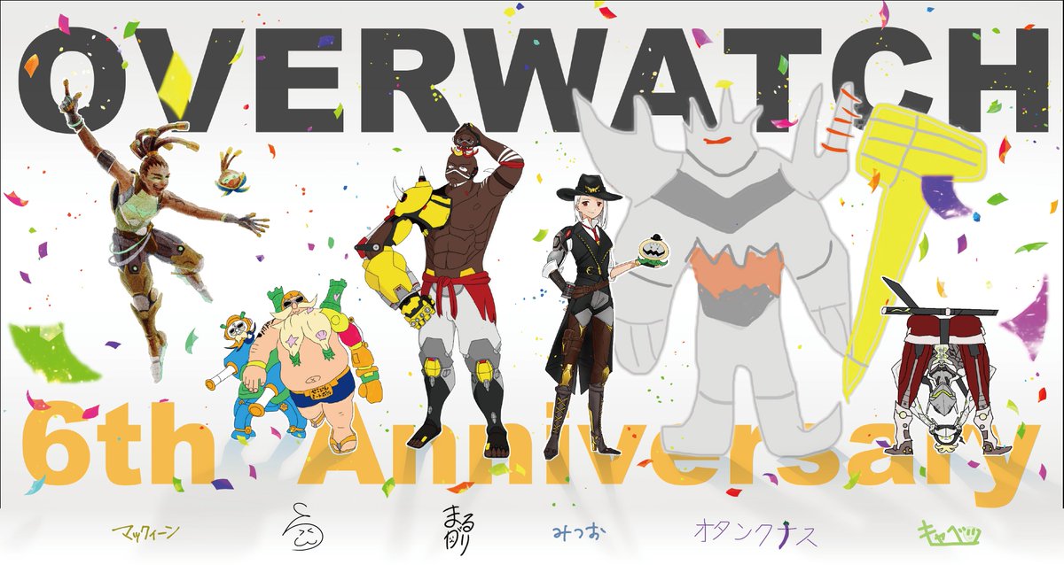 🎮OVERWATCH!! HAPPY 6th ANNIVERSARY🥳! #Overwatch #OverwatchFanart ろくさん( @69_6969kt )、まるがりさん( @smarugari )、みつおさん( @310___0 )、オタナスさん( @owtdh1 )、キャベツさん( @Kyabetu014971 )、私、 6人で6周年のお祝い合作イラスト😳 楽しい思い出をありがとうございます!!