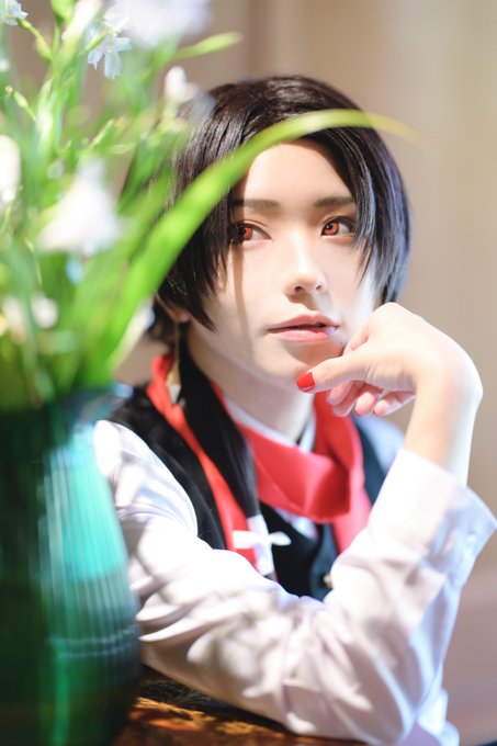 cosplay 刀剣乱舞 肥前忠広 炎の中で命を宿す 赤い赤いその花は 色を奪われ 白い白い骸のよう photo:@yu_46km_hi studio:@town_na flower:@nakipeacock10 #令和五年政府集会