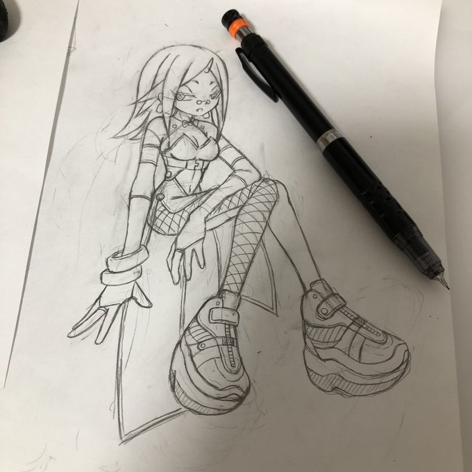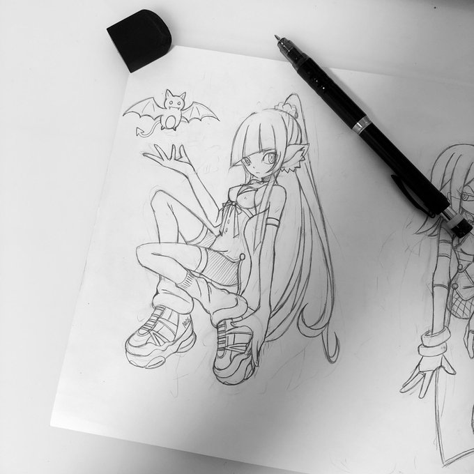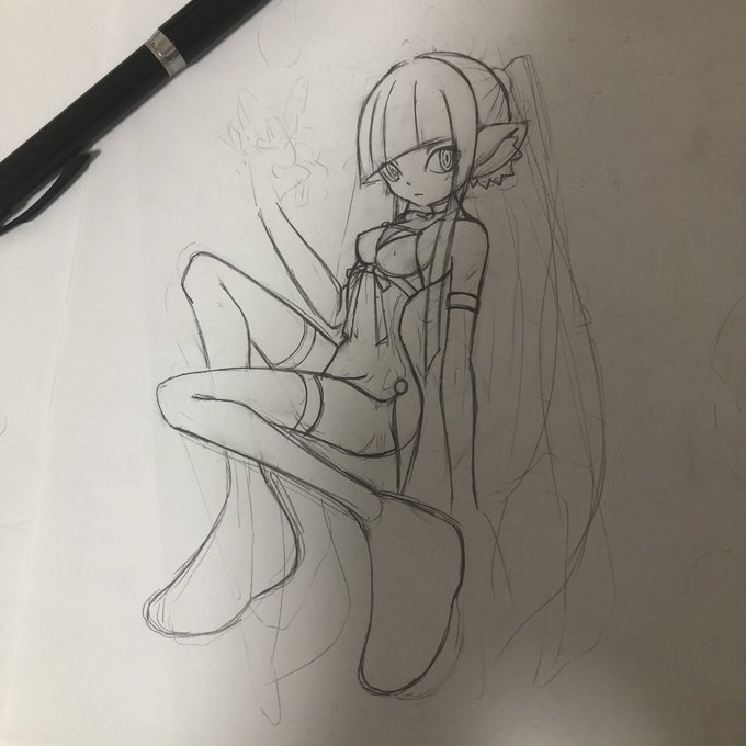 もう3時間ぐらい格闘中。 衣装、ポーズ、髪型等な〜んにも決まらない。。。 描いては消しての繰り返し。 今日はもう寝よ。 #イラスト #イラストレーション #illustlation #絵 #ラクガキ #rkgk #ラフ