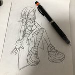 この子と格闘してたら寝坊しました。 待ち合わせには間に合うはず。 #イラスト #イラストレーション #illustraion #絵 #ラフ #ラクガキ #rkgk #デザフェス 行ってきます。