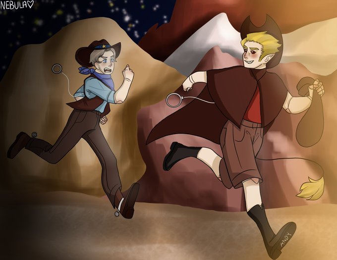 Hey y’all give him a break. Running in wet clothes and cowboy boots is hard! ——————————————————— #MikaDtiys #solidaritygamingfanart @FLapp0 [be sure to untag pls :)]