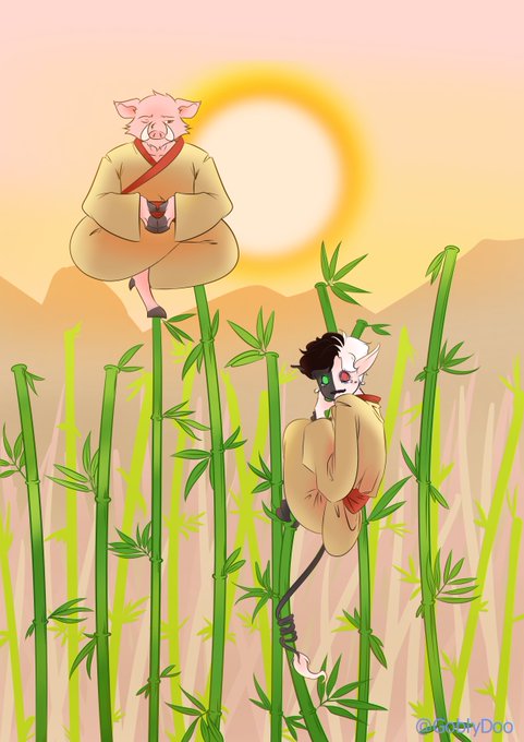 Techno-sensei with disci-boo This is supposed to be an excuse to practice background but then I got lazy... #technobladefanart #technofanart #ranboofanart #Ranboo #techno