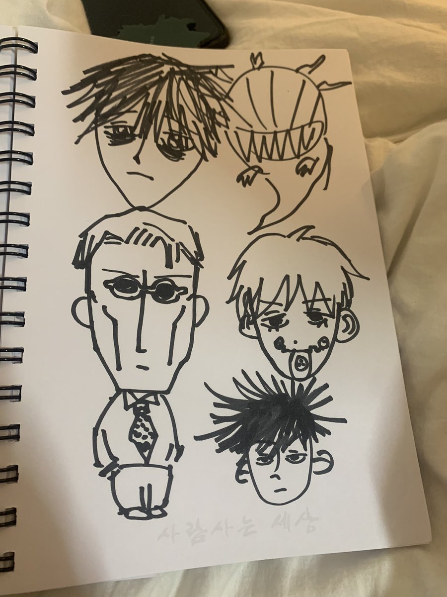내지인이 안보고 그린 주술캐 보실분 고죠랑 나나미 보고 진심 개빡빡 웃음ㅠ