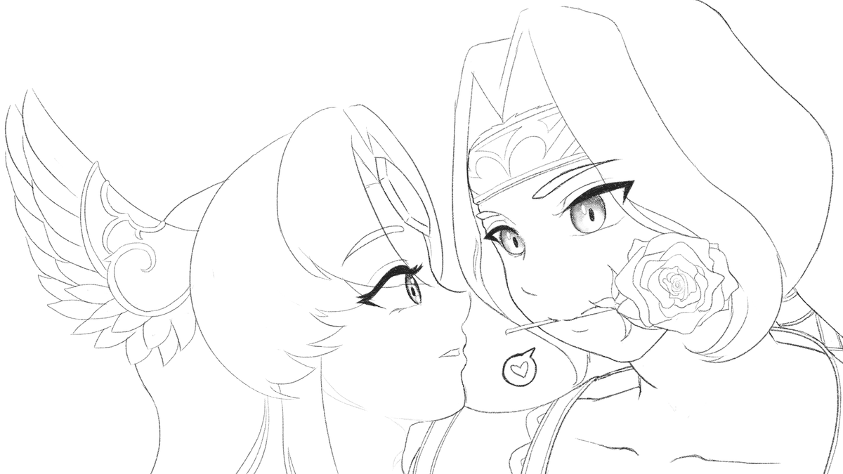 過去絵ですがツイッターでまだアップしてなかったです。chacusaさんのためにMultifandom Doodle 2021で作ったものでした! A rose for you #聖剣3オンリーカプの日