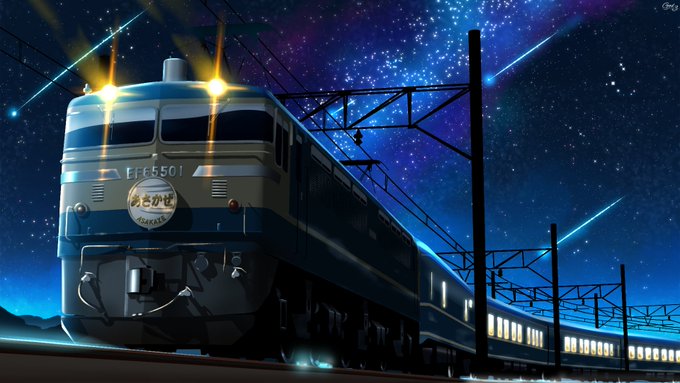 【STAR NIGHT EXPRESS 】 星々が煌めく夜空を走る在りし日の寝台特急あさかぜです。 今年も色々ありましたが、来年は自分にも周りにも良い年になると良いですね。 また来年もよろしくお願いします。 #EF65 #寝台特急 #鉄道 #イラスト #今年最後のイラスト