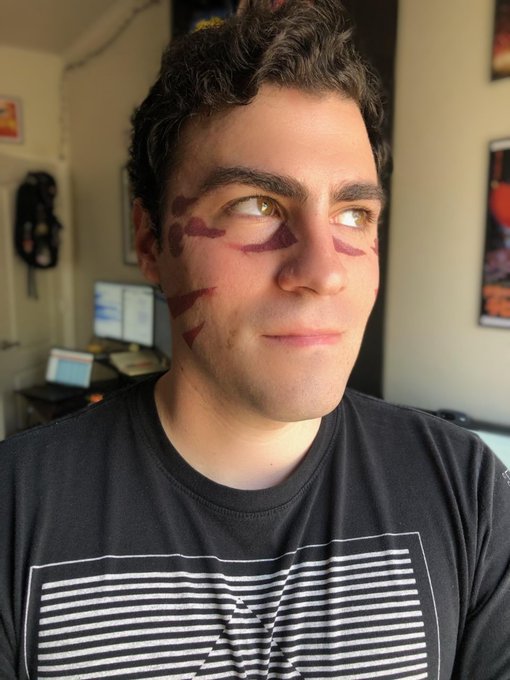 1 22 I shaved my beard to attempt my Mi'qote's markings! It's my first time ever applying makeup on myself, but I like the result! #cosplay #FFXIV 20/05/11 07:23