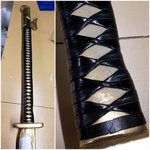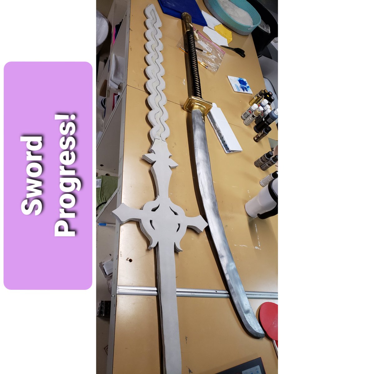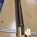 Narmaya's sword and sheath are pretty much complete! 🥰 Love this thing so much!! Though it is definitely a challenge trying to photograph the whole thing 😂 Unsheathed, it's 67 inches long! @SKSProps #narmaya #cosplay #ilikebigpropsandicannotlie