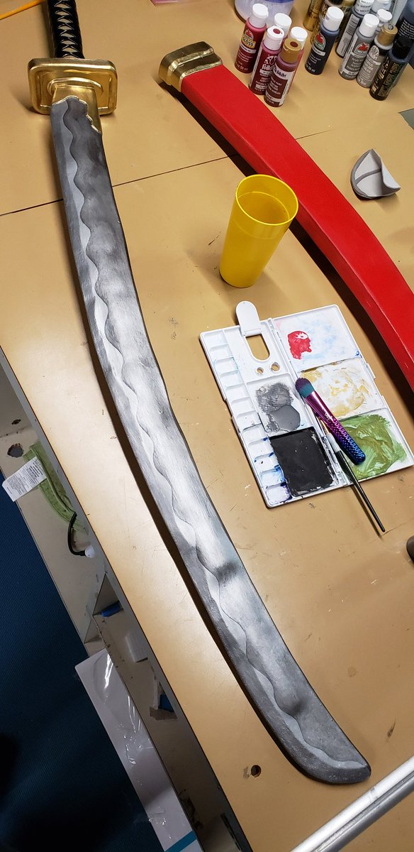 The paint job on Narmaya's katana isn't finished yet, but I'm already in LOVE!! 💖 Adding another coat of dark silver, then it's time for weathering! #cosplay #GranblueFantasy #narmaya
